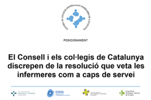 El Consell de Col·legis d’Infermeres i Infermeres de Catalunya (CCIIC) i els col·legis oficials d’infermeres i infermers de Barcelona (COIB), Girona (COIGI), Lleida (COILL) i Tarragona (CODITA) discrepem amb la sentència, no ferma, del Jutjat del Social número 3 de Terrassa que deixa sense efecte el nomenament de dues infermeres com a caps de servei del Consorci Sanitari de Terrassa (CST); arran de la demanda de conflicte col·lectiu interposada pel sindicat Metges de Catalunya.