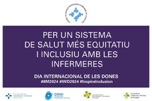 Missatge alineat amb el del Consell de Col·legis d’Infermeres i Infermers de Catalunya (CCIIC) que, “traslladant aquesta inclusió al terreny de la salut, reivindiquem el respecte professional i la incorporació efectiva de les infermeres a tots els espais de decisió, lideratge i gestió del sistema de salut”, explica la Dra. Glòria Jodar, degana de la corporació.