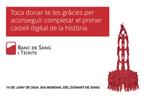 El 14 de juny, Dia Mundial del Donant de Sang, es commemora enguany entorn de l’èxit que suposen les 128.510 donacions comptabilitzades a Catalunya durant el primer semestre de 2024. Un nou rècord que el Banc de Sang i Teixits (BST) ha celebrat amb l’enlairament d’un castell virtual que es pot visualitzar en realitat augmentada des de l’accés geolocalitzat, via mòbil, des de les places de Catalunya (Barcelona), del Vi (Girona), de la Paeria (Lleida) o de la Font (Tarragona); accedint al seu web.