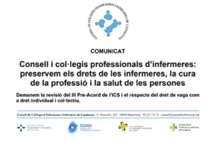 Consell i col·legis professionals d’infermeres: preservem els drets de les infermeres, la cura de la professió i la salut de les persones