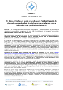 231102 CCIIC COMUNICAT Suport Estabilització Laboral i Continuïtat contractual Infermeres a Catalunya