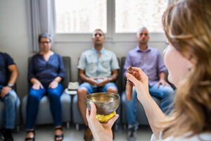 Foto: Infermera de salut mental fa una sessió de mindfullness © Ariadna Creus i Àngel García (Banc d’Imatges Infermeres)