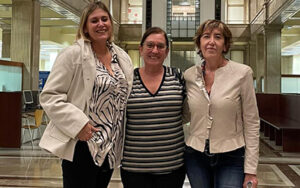 Foto superior: Núría Illamola (vicepresidenta CODITA), Glòria Jodar (degana CCIIC) i Mercè Porté (presidenta COILL) © CCIIC