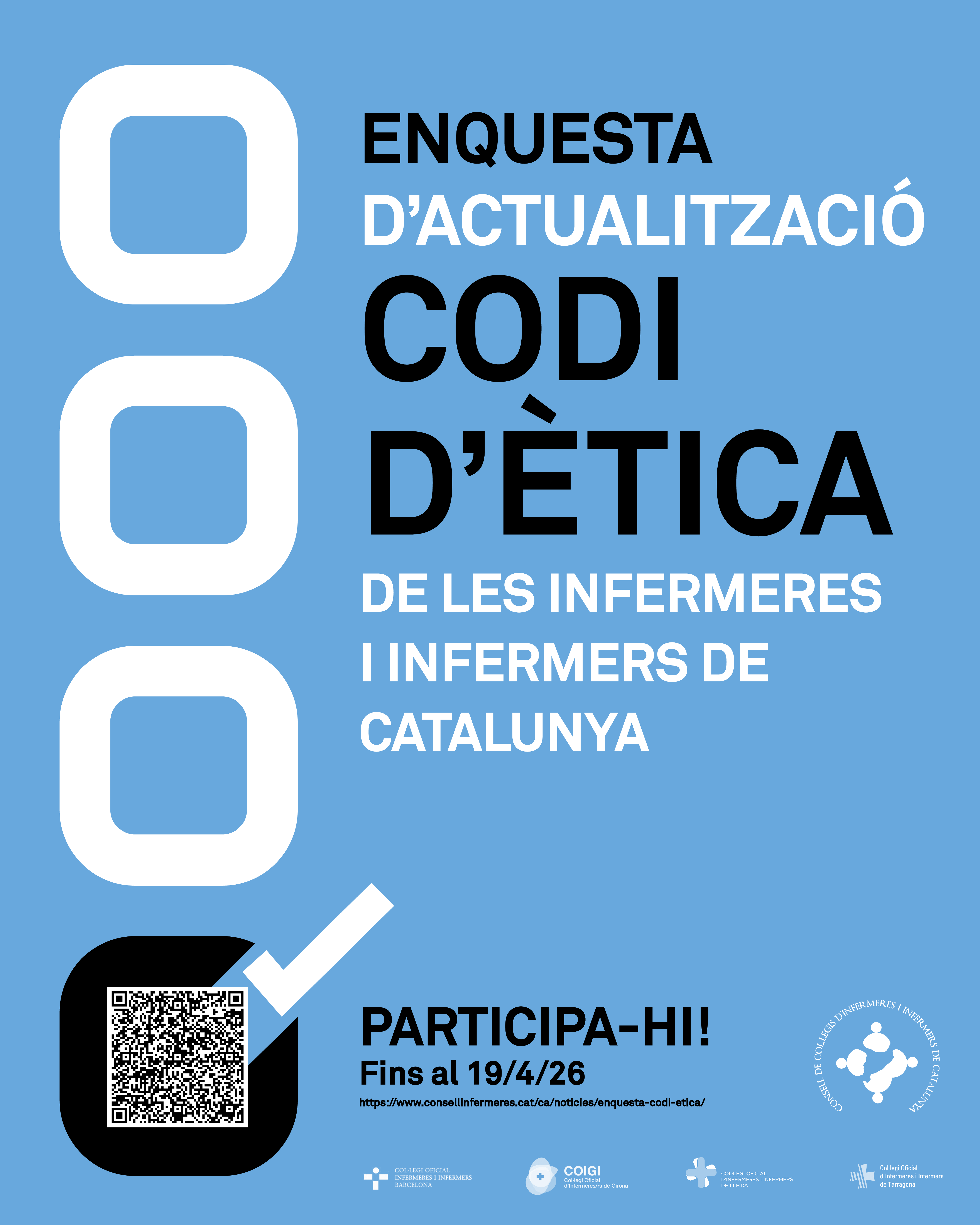Es pot participar en l’enquesta fins al pròxim diumenge 19 d’abril, prement l’enllaç següent. Les respostes són anònimes i la informació recollida s’utilitzarà per a “l’actualització dels epígrafs actuals, alhora que per a introduir millores que garanteixin que el nou Codi d’Ètica sigui representatiu de la professió infermera i respongui als reptes ètics actuals de l’atenció a les persones, les famílies i la comunitat”.