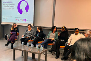 Tot seguit, va tenir lloc la taula rodona moderada per la periodista Jéssica del Moral i que va abordar la MGF des de diverses perspectives. Marina Gallés Clarà –advocada i membre de la permanent de la Comissió de Dones Advocades de la Intercol·legial– va inaugurar la roda d’intervencions amb una introducció al “Marc Jurídic Regulador de la Mutilació Genital Femenina”. A continuació van intervenir les infermeres Aina Mangas Llompart –infermera experta en salut pública, antropòloga i vicepresidenta de l’ONG Wassu Gambia Kafo– que va oferir una mirada global de “La Mutilació Genital Femenina a Catalunya, Espanya i Gàmbia. Observatori Transnacional de la MGF Catalunya-Gàmbia. Wassu Gambia Kafo, ONG”; i Oumou Balde Boiro –infermera a l’Hospital Universitari Dr. Josep Trueta de Girona, integradora social i membre de l’Associació Jokkere Endam– que va exposar les accions dutes a terme per erradicar les violències de gènere contra les dones migrants, com ara la mutilació genital femenina o els matrimonis forçats. També, Aissatou Diallo –fundadora i presidenta de l’Asociación Humanitaria Contra la Ablación de la Mujer Africana (AHCAMA)– va explicar les línies d’acció de l’entitat.