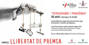 Dilluns 26 d’abril, la ciutat de Lleida acull la primera jornada de la sisena edició del ‘Simposi de Llibertat de Premsa’, coorganitzat per la Demarcació de Lleida del Col·legi de Periodistes de Catalunya (CPC) i la Universitat de Lleida (UdL), amb el suport de l’Ajuntament de Lleida i de la Diputació de Lleida. El fòrum, que enguany tindrà una primera jornada telemàtica i una segona de caràcter presencial (dilluns 3 de maig), comptarà amb la participació d’Estrella Martínez, degana del Consell d’Infermeres i Infermers de Catalunya (CCIIC).